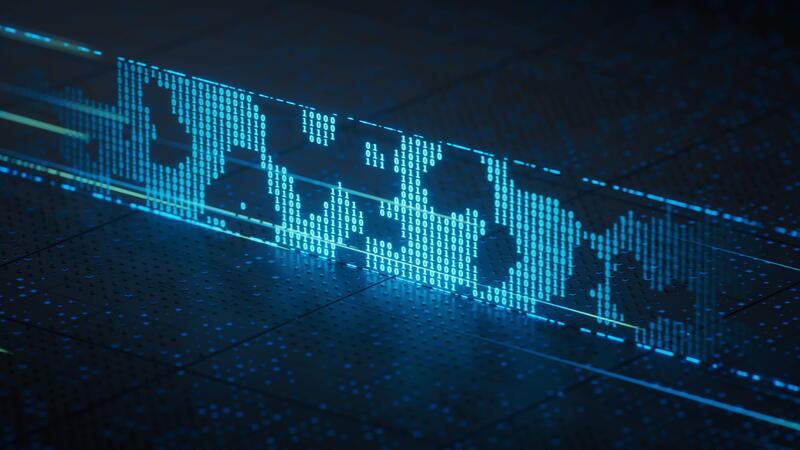 Technology circuit board with glowing binary data rendering. Pro Video