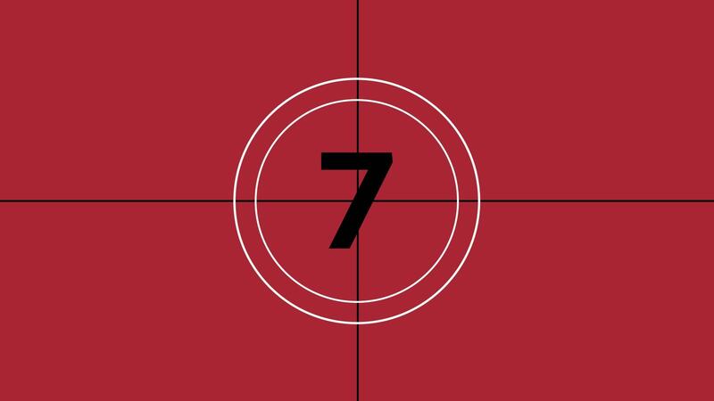 Retro film countdown 10 seconds starting count down displayed in a circle over a red background and a blue horizontal line Pro Video