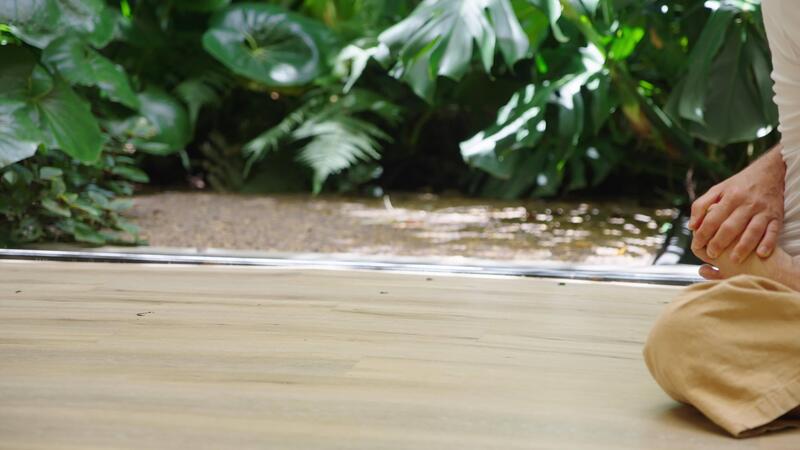 Man practicing lotus position in modern studio with centered focus Pro Video