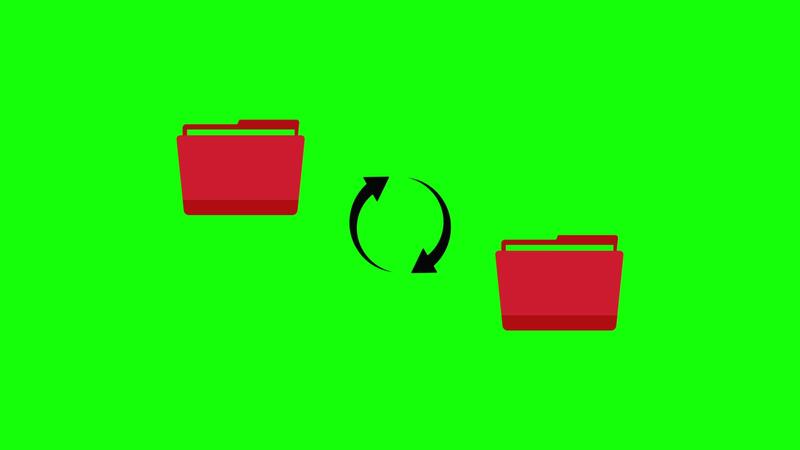 File transfer animation folder to folder data copy on computer moving files on green background 4k. Pro Video