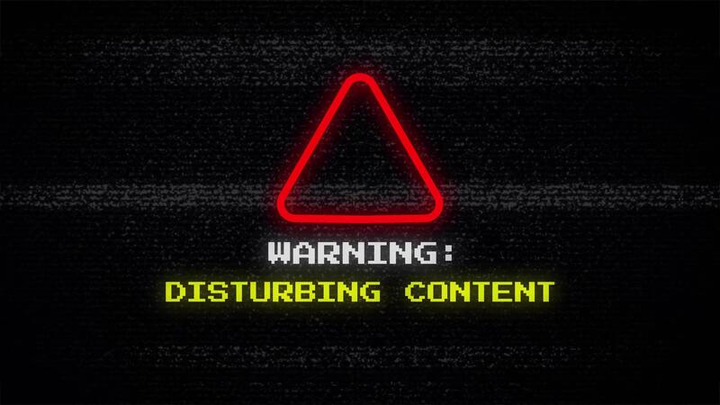 Warning Disturbing Content, Retro VHS Content Warning Screen overlay with a vintage static and glitch effect Pro Video