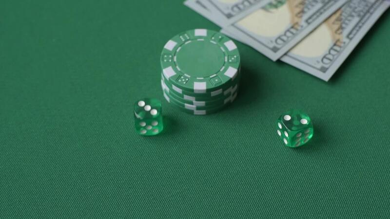 Dice game Craps in casino with chips, bets and risk. Craps game with all attributes as a background Pro Video