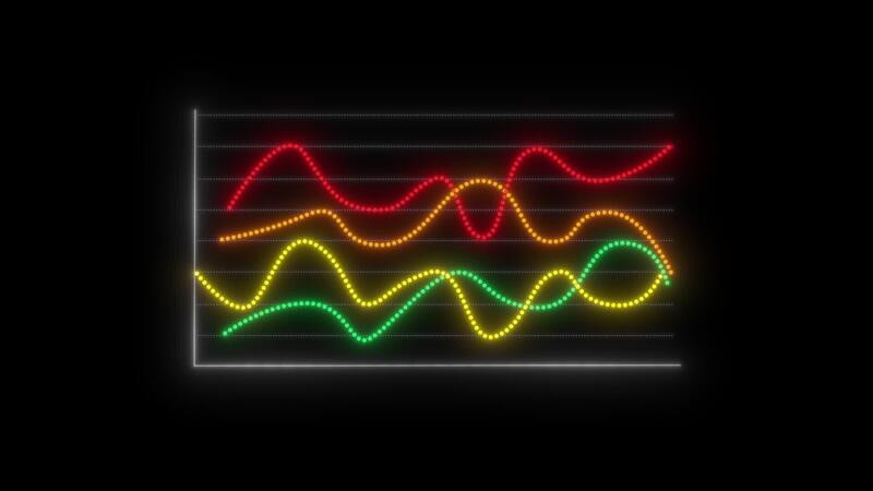 Animated financial growth chart with 2 trend line graph. Growth bar chart of economy on Black Background. Glowing Multiple line graph chart. Free Video