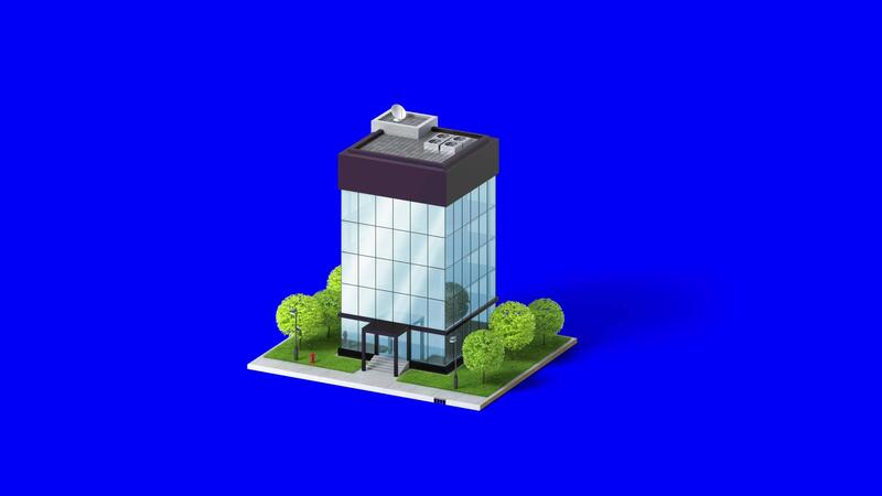 Building 3d animation with blue screen for chroma for using as a green screen background 4k Pro Video