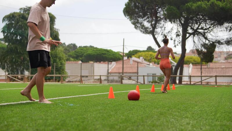 Engaging in a Dynamic Workout on a Green Field Emphasizing Training and Coordination Skills Pro Video