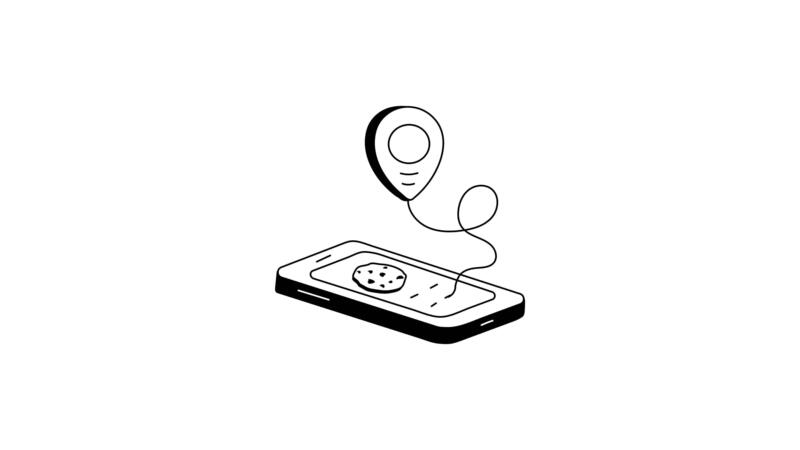 animated icon of a smartphone displaying a bakery location with a pin animated icon connected to the phone Pro Video