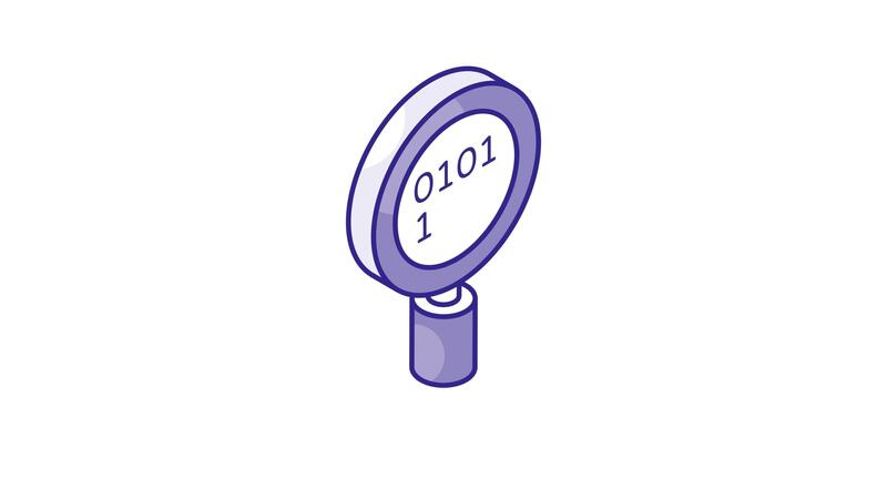 Binary code under magnifier, icon of binary search, code exploration.. Pro Video