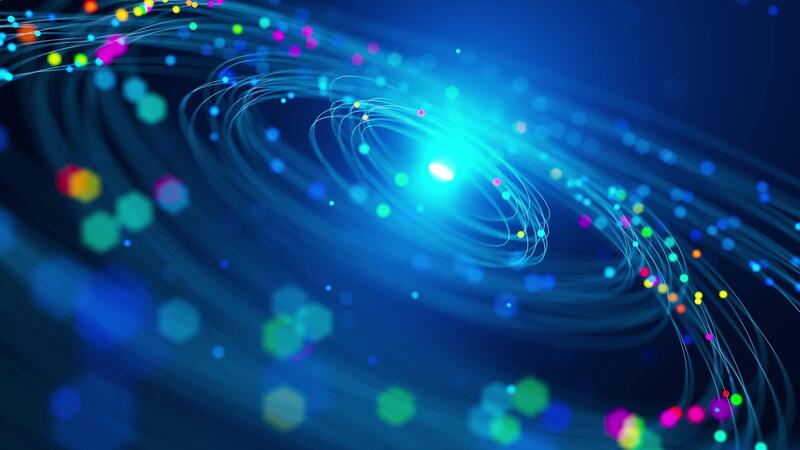 Abstract seamless loop showing neon light paths and vivid particles rotating around a central glow, symbolizing cosmic energy, futuristic motion, and digital dynamics. Pro Video