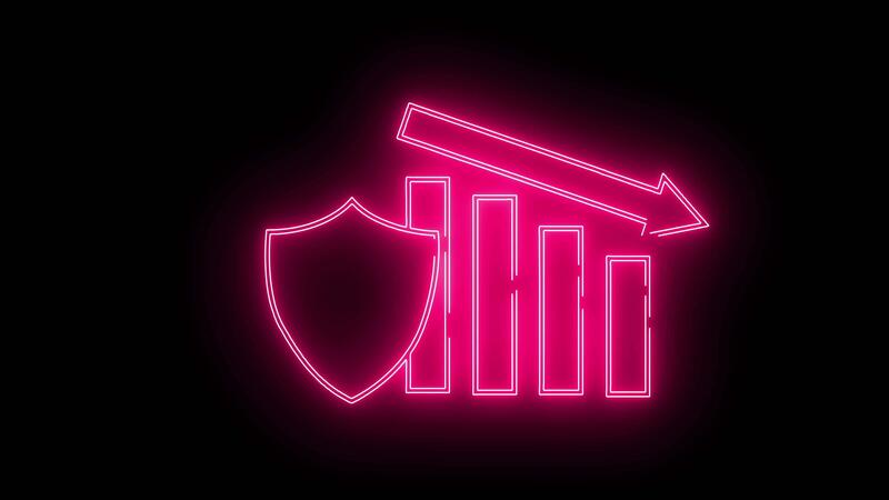 shield icon and down graph icon with neon effect Free Video