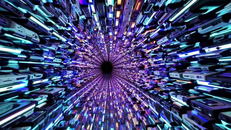 Dynamic visual journey through a vibrant tunnel of colorful lights and shapes, showcasing a continuous flow of energy and motion in a mesmerizing digital environment Free Video