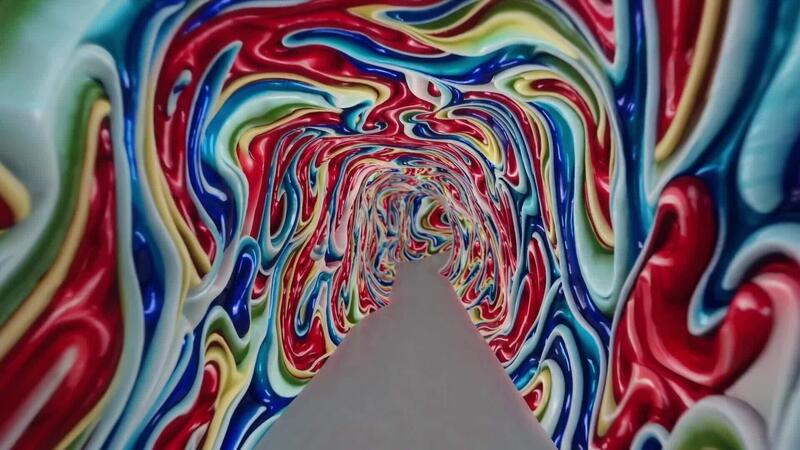 Colorful swirling tunnel with vibrant patterns and smooth textures, creating a mesmerizing visual journey through a dynamic and immersive space Free Video
