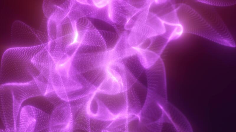 Flowing digital purple particles form a dynamic, mist-like mesh structure Free Video