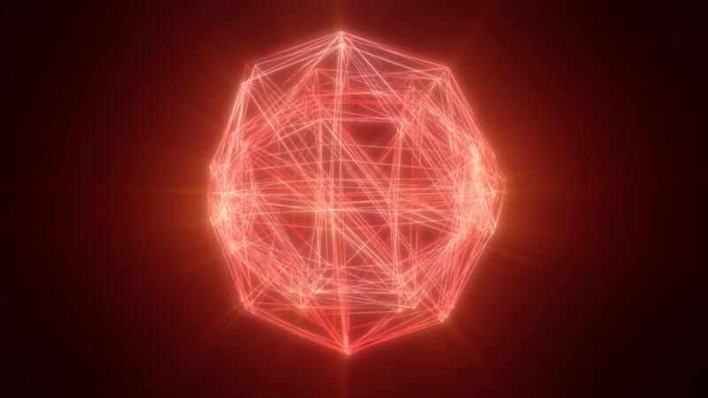Red 3D wireframe structure of a sphere with glowing neon lines, representing the fusion of art and technology in digital networks Free Video