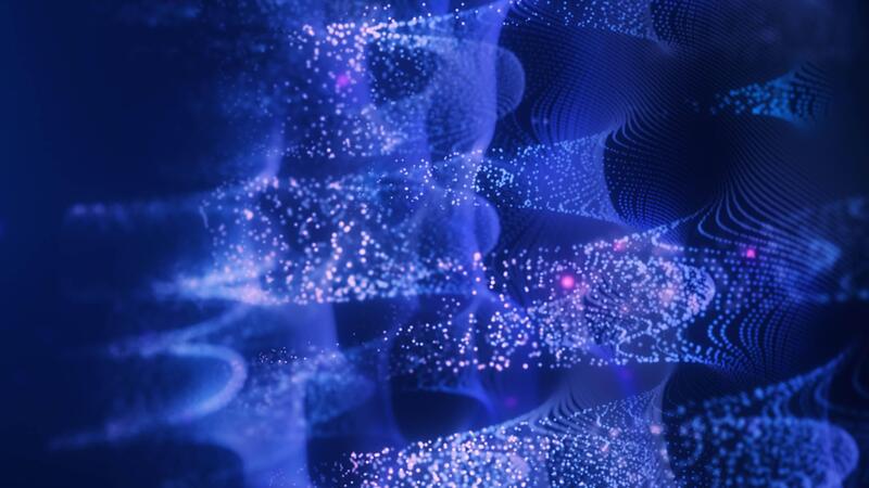 Abstract 3D visualization of floating particles and mesh waves Free Video