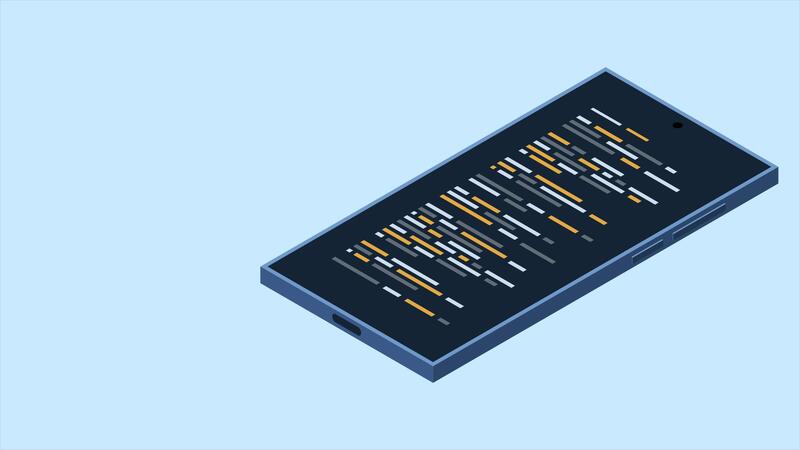 Isometric smartphone animation. Program code on smartphone screen. Isometric technology. 4K animated in isometric style. Free Video