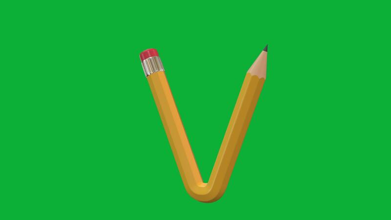 3D Alphabet Letter V Designed with Pencil Style Rotating Animation on Green Screen Background, Creative Educational Object, School Learning Symbol, Decorative Typography Element for Teaching. Free Video