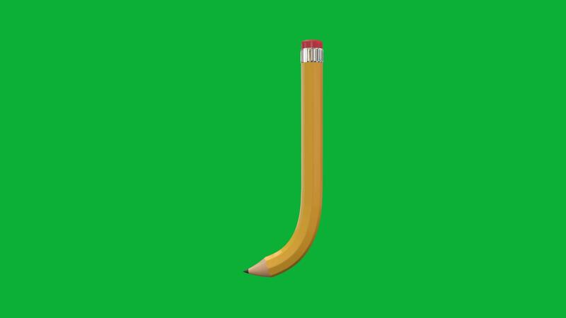 3D Alphabet Letter J Designed with Pencil Style Rotating Animation on Green Screen Background, Creative Educational Object, School Learning Symbol, Decorative Typography Element for Teaching. Free Video