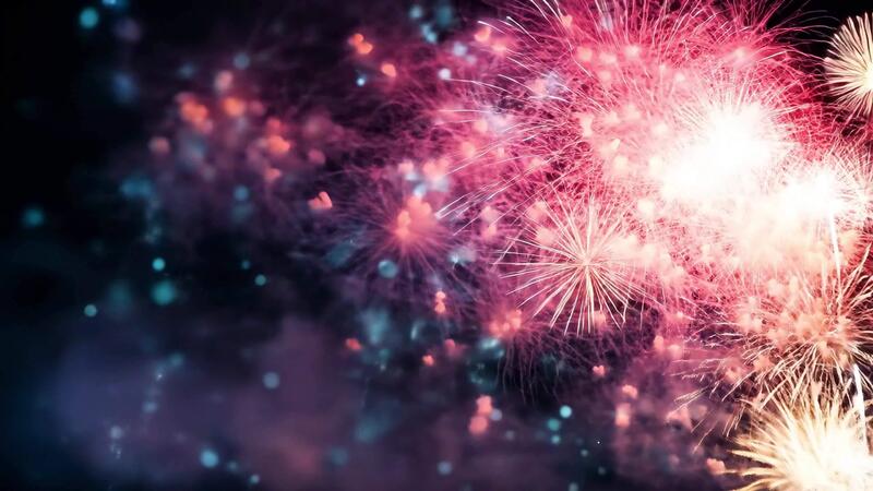Dynamic Colorful Fireworks Exploding in Dark Night Sky with Shimmering Bokeh Particles and Festive Glow Free Video