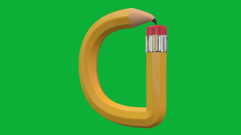 3D Alphabet Letter D Designed with Pencil Style Rotating Animation on Green Screen Background, Creative Educational Object, School Learning Symbol, Decorative Typography Element for Teaching. Free Video