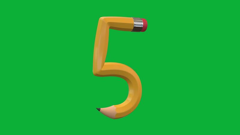 3D Number 5 Designed with Pencil Style Rotating Animation on Green Screen Background, Creative Educational Object, School Learning Symbol, Decorative Typography Element for Teaching, Education Free Video
