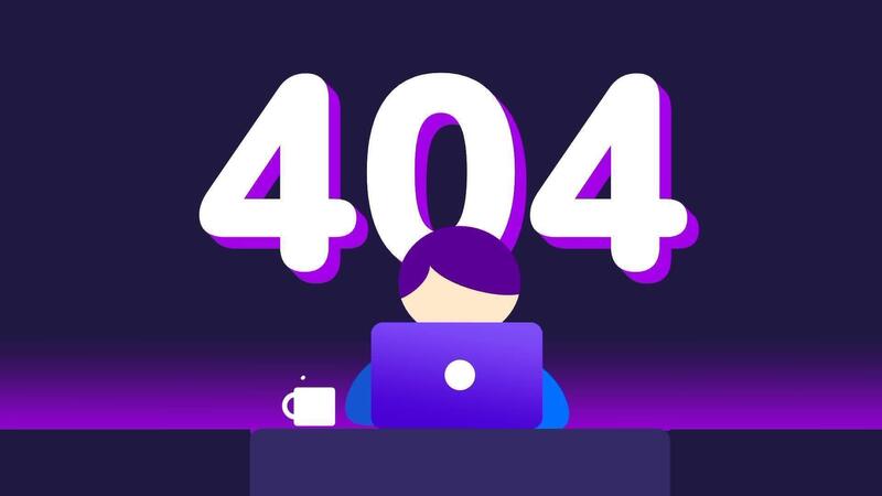 A dark-themed 404 error illustration showing a programmer working late at night with glowing text, reflecting persistence in problem-solving Free Video