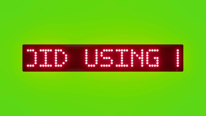 AVOID USING ELEVATORS DURING FIRE OR EARTHQUAKE Scrolling Red Dot Matrix LED Text Animation on Green Screen Seamless Loop Free Video
