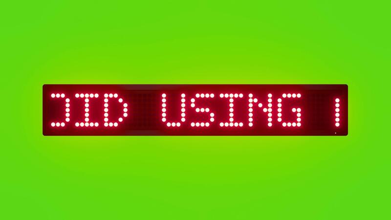 AVOID USING ATMS IN ISOLATED AREAS AT NIGHT Scrolling Red Dot Matrix LED Text Animation on Green Screen Seamless Loop Free Video