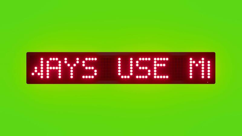 ALWAYS USE MARKED AND APPROVED ROUTES Scrolling Red Dot Matrix LED Text Animation on Green Screen Seamless Loop Free Video