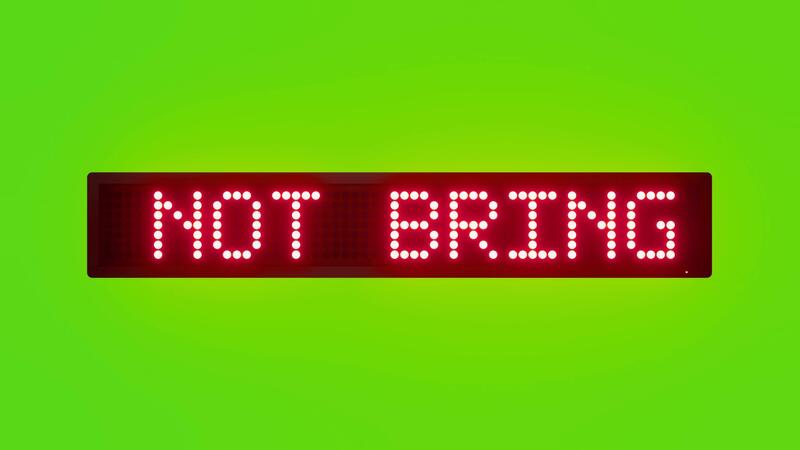 DO NOT BRING OUTSIDE FOOD TO DINING AREAS Scrolling Red Dot Matrix LED Text Animation on Green Screen Seamless Loop Free Video