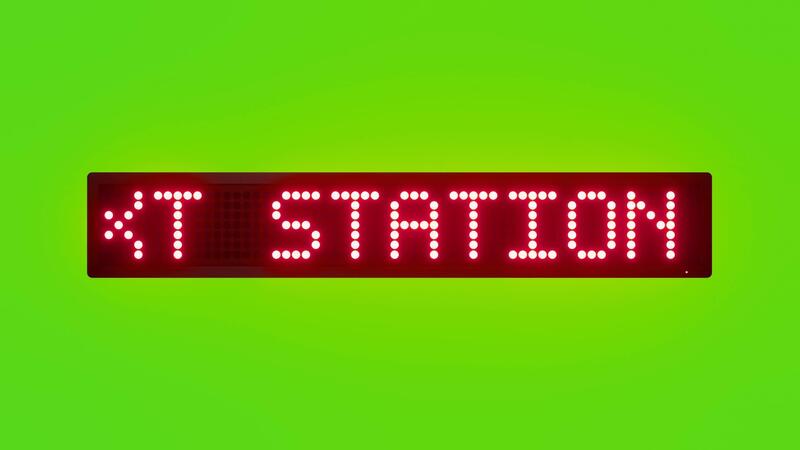 NEXT STATION IS CENTRAL JUNCTION Scrolling Red Dot Matrix LED Text Animation on Green Screen Seamless Loop Free Video