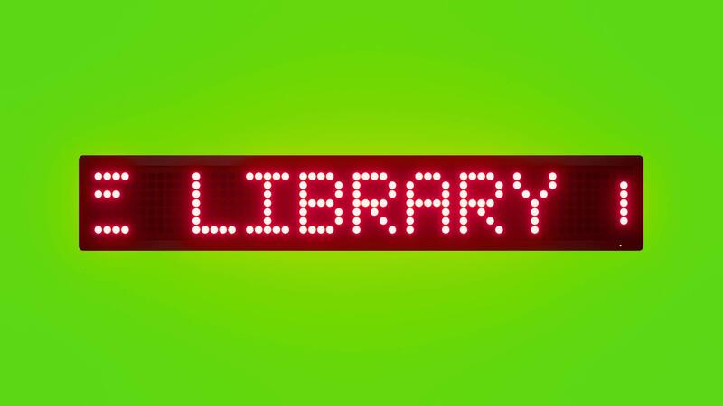 USE LIBRARY COMPUTERS RESPONSIBLY Scrolling Red Dot Matrix LED Text Animation on Green Screen Seamless Loop Free Video