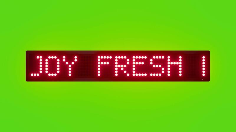 ENJOY FRESH POPCORN AND DRINKS Scrolling Red Dot Matrix LED Text Animation on Green Screen Seamless Loop Free Video