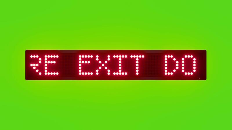 FIRE EXIT DO NOT BLOCK Scrolling Red Dot Matrix LED Text Animation on Green Screen Seamless Loop Free Video