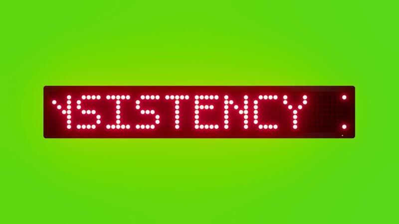 CONSISTENCY IS THE KEY Scrolling Red Dot Matrix LED Text Animation on Green Screen Seamless Loop Free Video