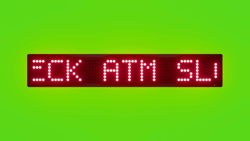 CHECK ATM SLOT FOR ANY UNUSUAL DEVICES Scrolling Red Dot Matrix LED Text Animation on Green Screen Seamless Loop Free Video