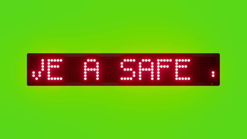 HAVE A SAFE JOURNEY Scrolling Red Dot Matrix LED Text Animation on Green Screen Seamless Loop Free Video