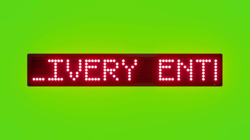 DELIVERY ENTRANCE ON RIGHT Scrolling Red Dot Matrix LED Text Animation on Green Screen Seamless Loop Free Video
