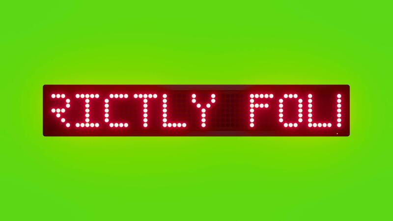 STRICTLY FOLLOW SPEED LIMIT SIGNBOARDS Scrolling Red Dot Matrix LED Text Animation on Green Screen Seamless Loop Free Video