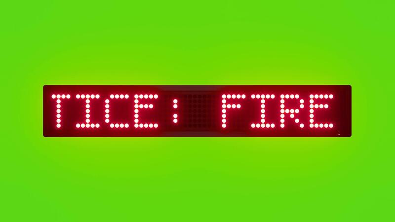 NOTICE FIRE EXIT DO NOT BLOCK Scrolling Red Dot Matrix LED Text Animation on Green Screen Seamless Loop Free Video