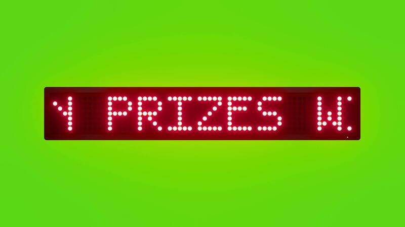WIN PRIZES WITH LUCKY DRAW SHOPPING Scrolling Red Dot Matrix LED Text Animation on Green Screen Seamless Loop Free Video