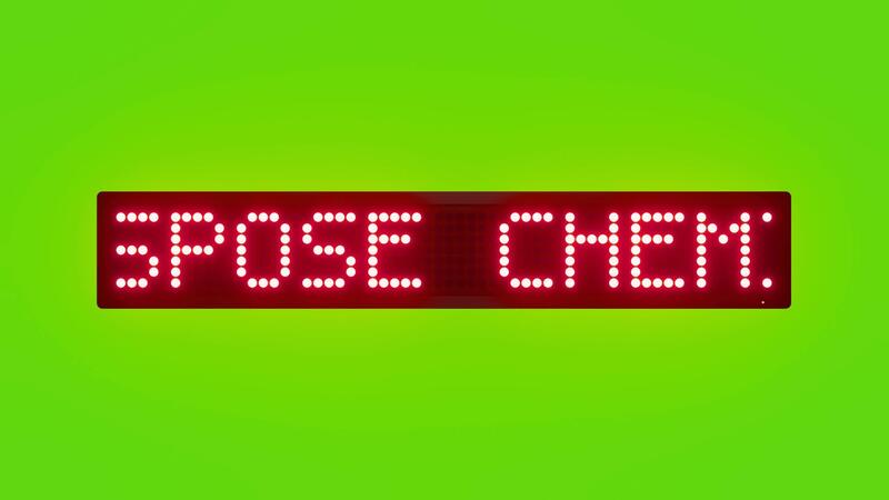 DISPOSE CHEMICAL WASTE ONLY IN MARKED CONTAINERS Scrolling Red Dot Matrix LED Text Animation on Green Screen Seamless Loop Free Video