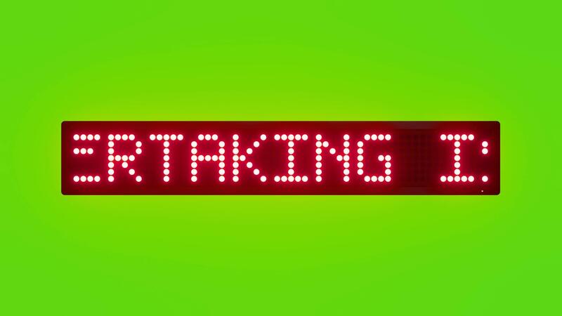 OVERTAKING IS PERMITTED ONLY FROM RIGHT SIDE Scrolling Red Dot Matrix LED Text Animation on Green Screen Seamless Loop Free Video