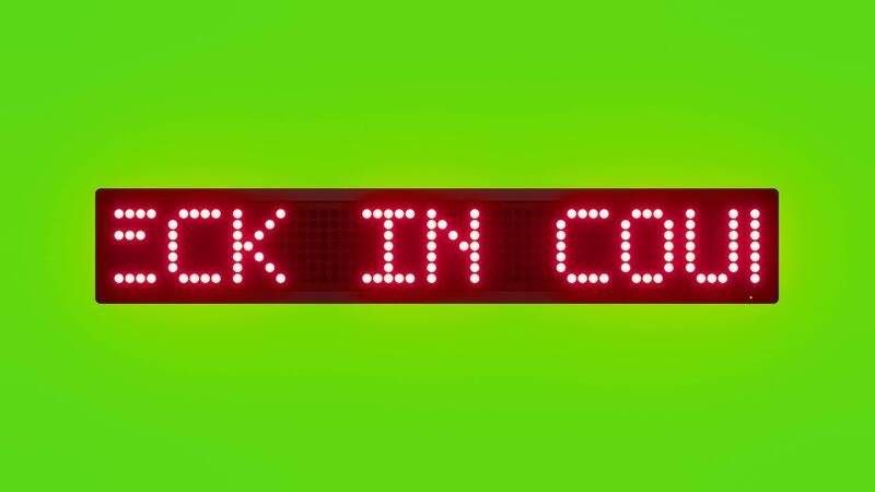 CHECK IN COUNTERS WILL CLOSE SOON Scrolling Red Dot Matrix LED Text Animation on Green Screen Seamless Loop Free Video
