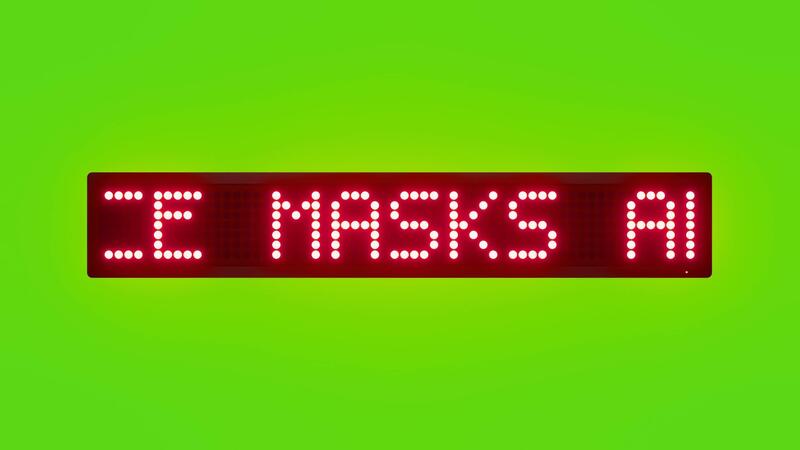 FACE MASKS ARE COMPULSORY IN THIS AREA Scrolling Red Dot Matrix LED Text Animation on Green Screen Seamless Loop Free Video