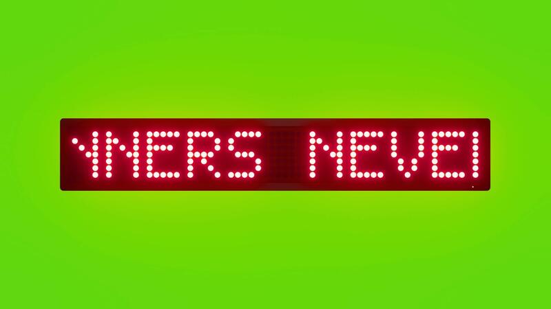 WINNERS NEVER QUIT Scrolling Red Dot Matrix LED Text Animation on Green Screen Seamless Loop Free Video