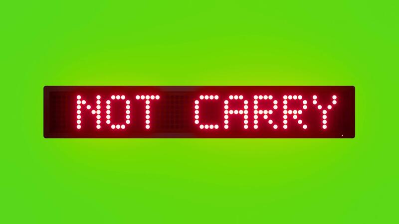 DO NOT CARRY INFLAMMABLE ITEMS Scrolling Red Dot Matrix LED Text Animation on Green Screen Seamless Loop Free Video