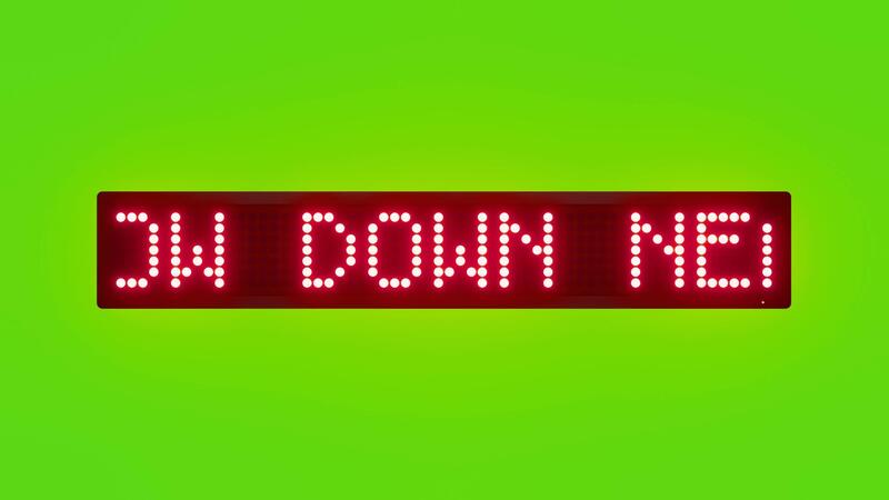 SLOW DOWN NEAR SCHOOLS AND HOSPITALS Scrolling Red Dot Matrix LED Text Animation on Green Screen Seamless Loop Free Video