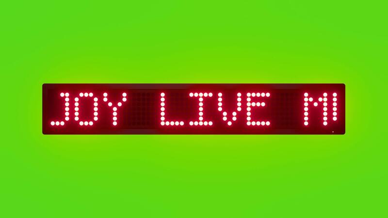 ENJOY LIVE MUSIC AND DINNER Scrolling Red Dot Matrix LED Text Animation on Green Screen Seamless Loop Free Video