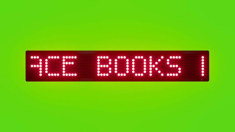 PLACE BOOKS BACK ON THE RETURN TROLLEY Scrolling Red Dot Matrix LED Text Animation on Green Screen Seamless Loop Free Video