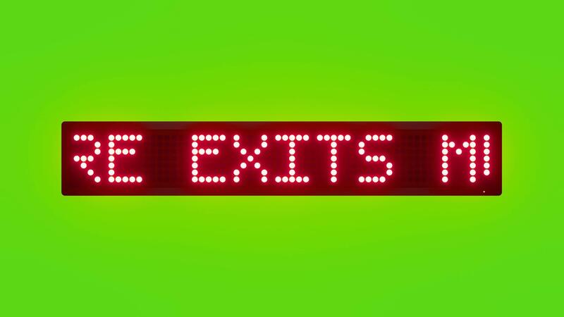 FIRE EXITS MUST BE KEPT CLEAR AT ALL TIMES Scrolling Red Dot Matrix LED Text Animation on Green Screen Seamless Loop Free Video